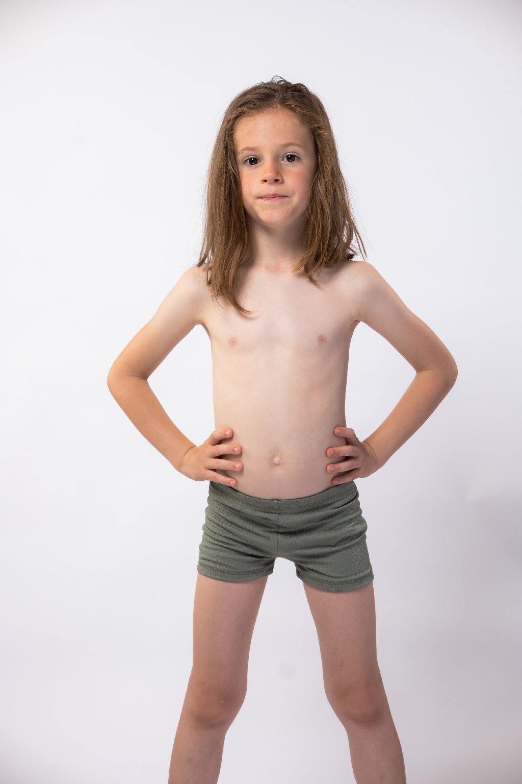 Elegantní a nadčasové. Ručně šité v Česku z recyklované látky s jemnou strukturou, která připomíná zrnka písku. Olivový odstín podtrhuje opálení a přirozenou krásu každé ženy.